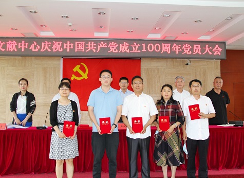 薛迎喜同志在讲话中指出,通过召开庆祝建党100周年党员大会这一庄重仪式并进行重温入党誓词,就是希望全体党员“不忘初心、牢记使命”,“履职尽责、勇于担当”,切实向受表彰的优秀个人和先进集体学习,在本职岗位上不断努力、奋勇开拓,为中心事业发展和业务转型升级贡献自己的智慧和力量。各党支部要充分发挥支部战斗堡垒作用和党员的先锋模范作用,以党的政治建设统领业务工作,找准图书情报信息服务党和国家事业发展的切入点和着力点,把创新摆在重要位置,围绕“全力支撑能源、矿产、水和其他战略资源安全保障,精心服务生态文明建设和自然资源管理中心工作”的定位,推进服务方向、指导理论和发展动力三个战略性转变,努力使中心各项工作跃上一个新的台阶,持续用力推进研究型文献中心和智慧型图书馆建设,开展碳达峰碳中和研究,以饱满的热情、昂扬的斗志、良好的精神状态和优异的成绩向党的百年华诞献礼。