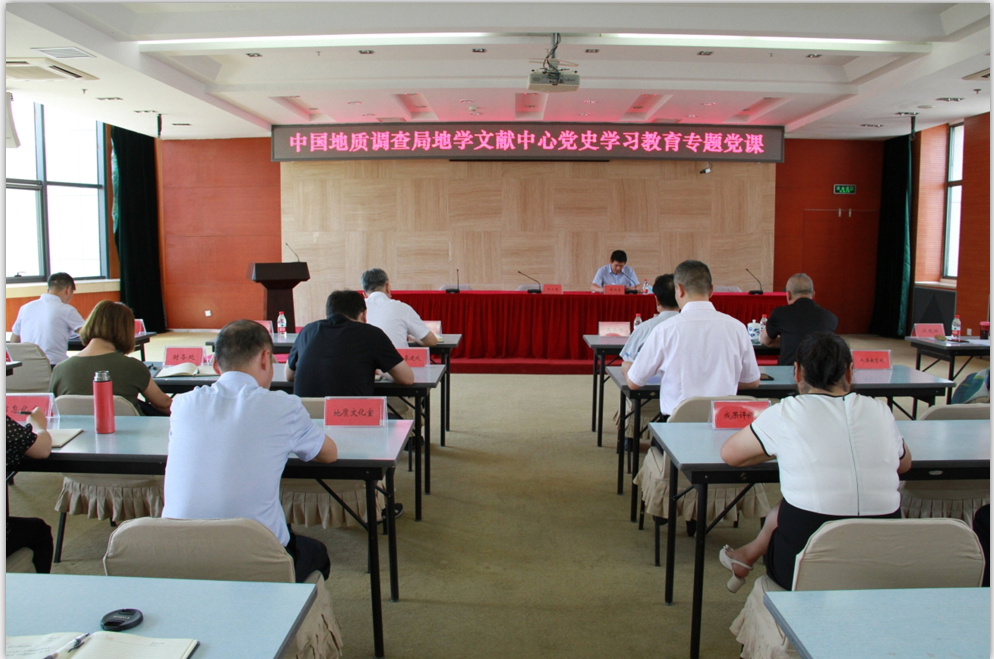 2021年7月23日,中国地质调查局地学文献中心举行党史学习教育专题党课报告会,地学文献中心党委书记以《从中国共产党百年奋斗历程中汲取前进力量,为地学文献中心转型发展提供不竭动力》为题,为全体党员干部讲授党史学习教育专题党课。