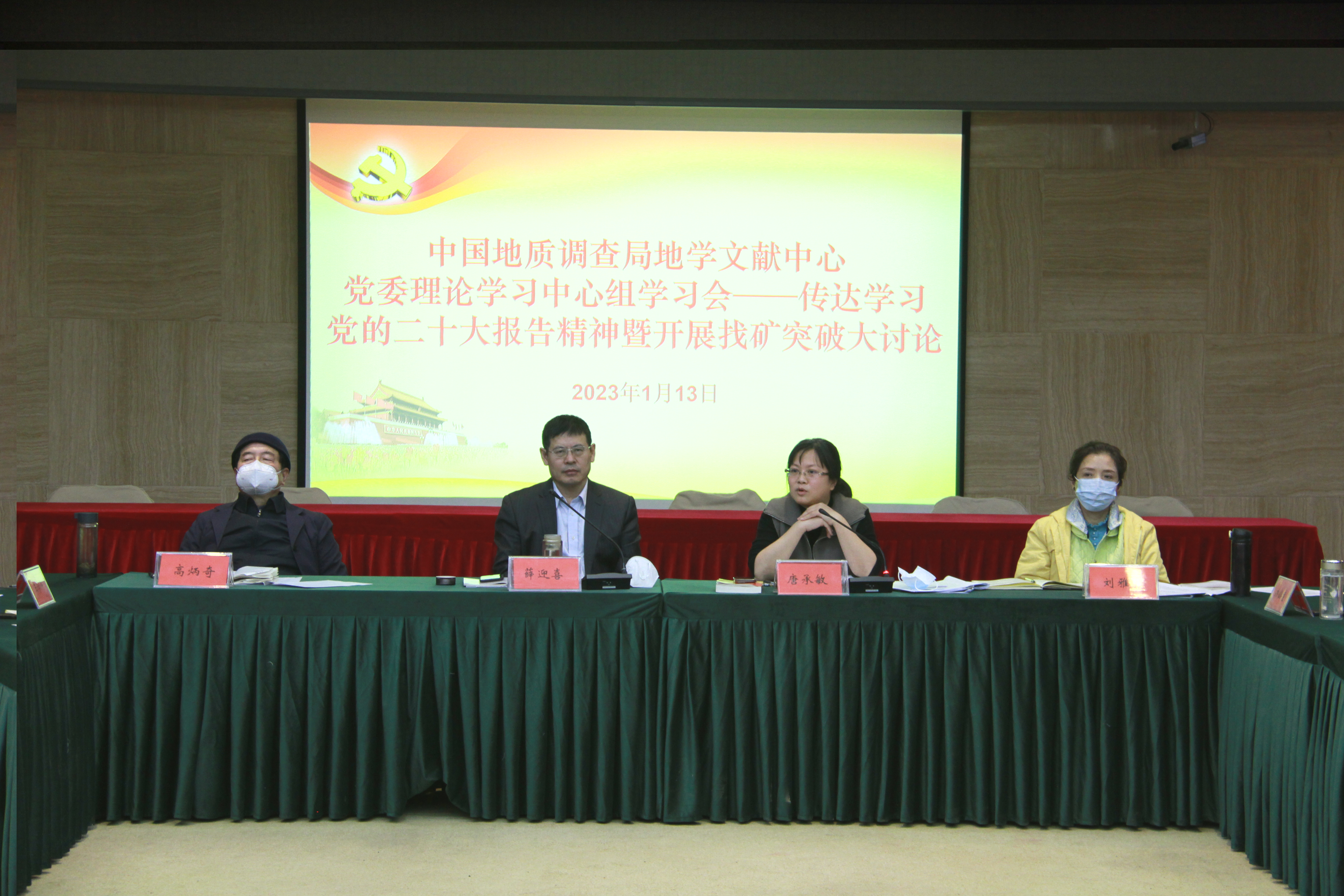 为深入学习贯彻党的二十大精神和习近平总书记给山东省地矿局第六地质大队全体地质工作者的重要回信精神,加强支撑服务新一轮找矿突破战略行动。2023年1月13日下午,中国地质调查局地学文献中心结合贯彻落实全国自然资源工作会议和全国地质调查工作会议精神,聚焦“推动新一轮找矿突破,保障国家能源资源安全,我们怎么做”召开了党委理论学习中心组学习会,开展深入交流研讨。中心党委书记薛迎喜同志主持会议,中心副主任(主持工作)唐承敏同志作主题发言,党委班子成员和中层以上干部参加了会议。