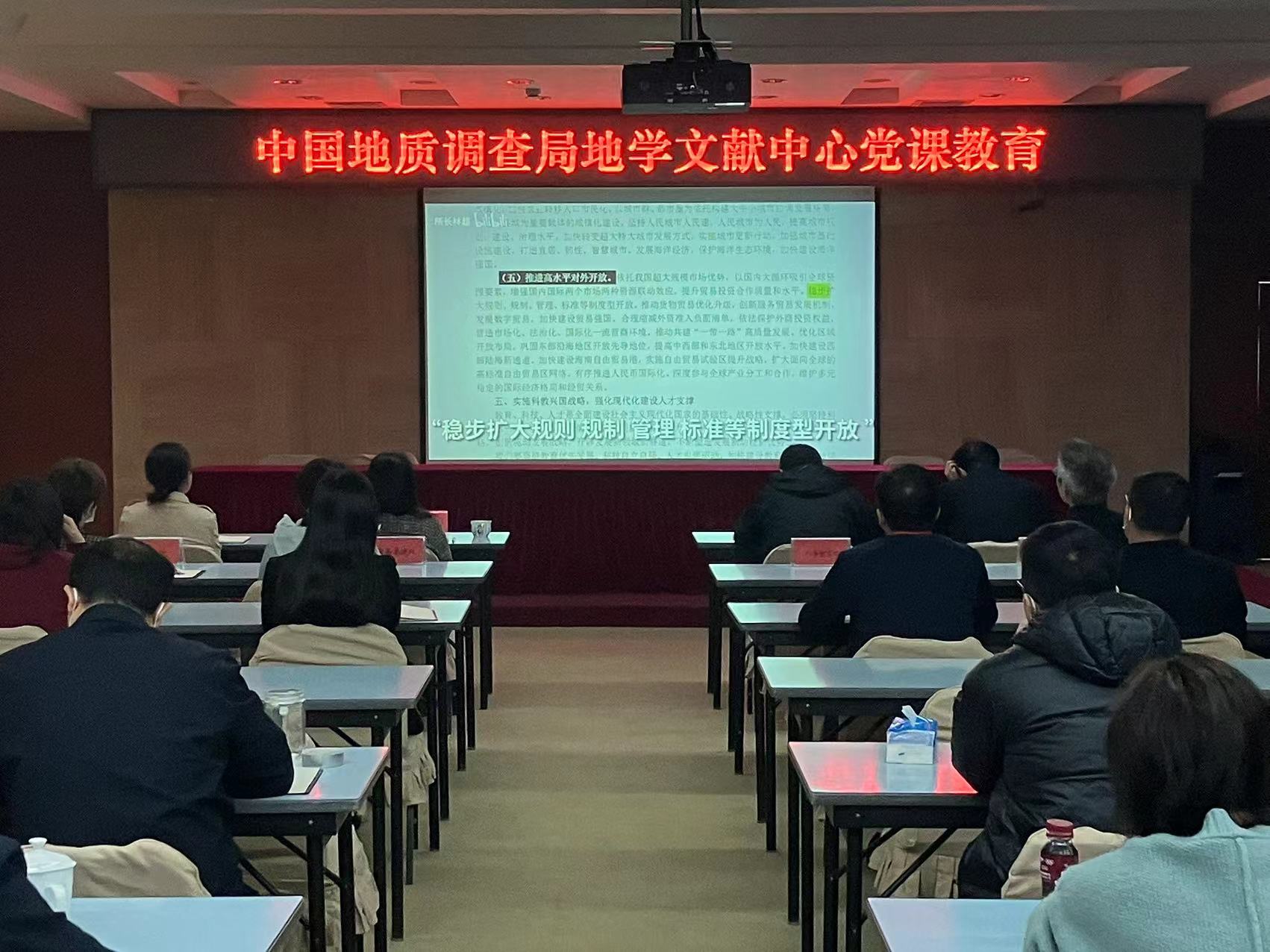 3月30日上午,中国地质调查局地学文献中心开展党课教育,深入学习贯彻党的二十大和全国“两会”精神。党课以播放专题片的方式开展,中心党委班子成员和全体党员、入党积极分子参加。