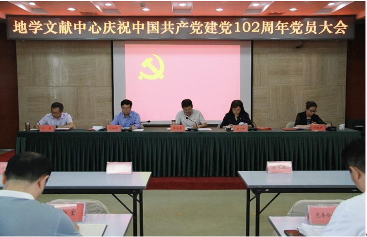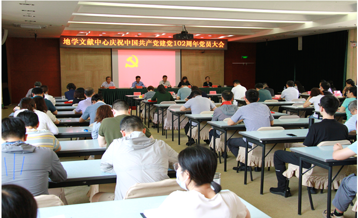 为庆祝中国共产党成立102周年,推动主题教育走深走实,进一步学习运用好习近平新时代中国特色社会主义思想的世界观和方法论,提高党组织政治功能,发挥党员先锋模范作用。6月30日上午,中国地质调查局地学文献中心开展庆祝建党102周年系列活动,通过表彰先进党支部和优秀共产党员、重温入党誓词、讲主题教育专题党课等形式喜迎党的生日,局第五巡回指导组成员、中心党委班子成员和全体党员参加了本次活动。